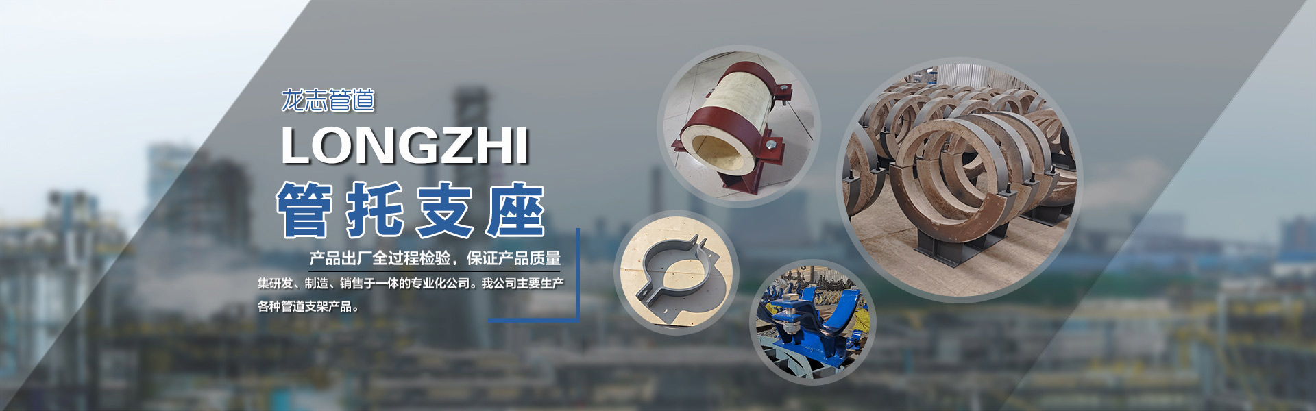 河北龙志管道设备制造有限公司生产加工销售管道管托、支座、管夹、弹簧支吊架。公司位于中国"管道基地"--河北省沧州市,公司北依京津、东临黄骅港,交通十分便利。我们始终秉承“诚信经营,质量为本”的企业理念和“客户至上,以德兴厂”的经营宗旨,致力于建设以管理为基础,以科技为先导,以质量为生命线的企业,愿我公司能成为您的长期合作伙伴,我们真诚欢迎您的到来…… 了解更多